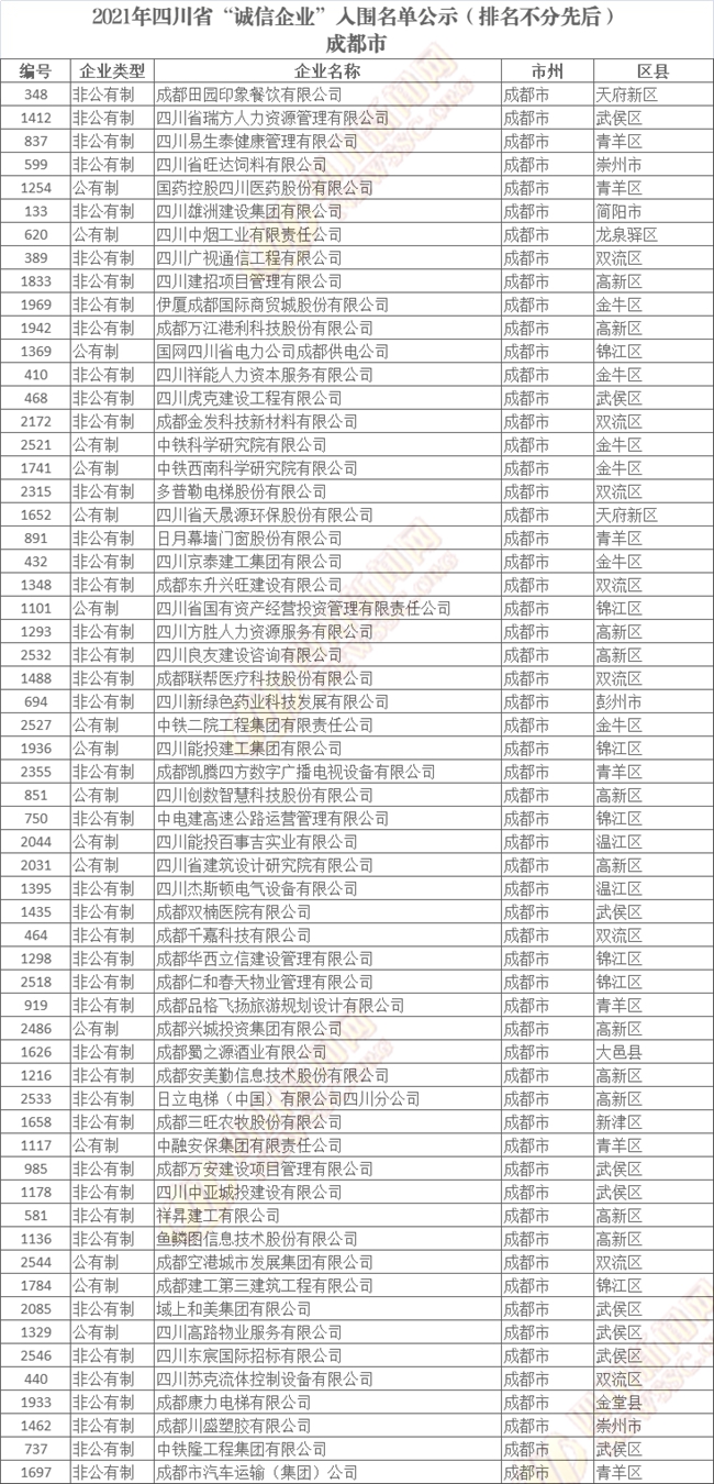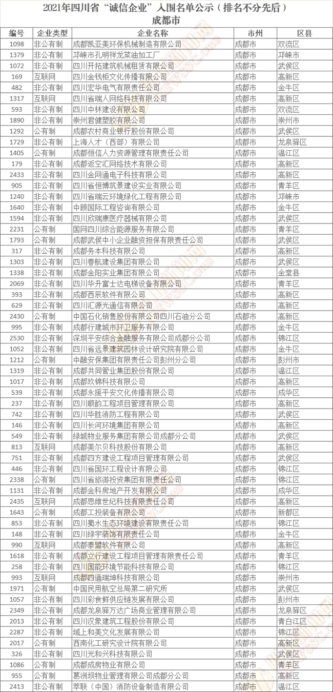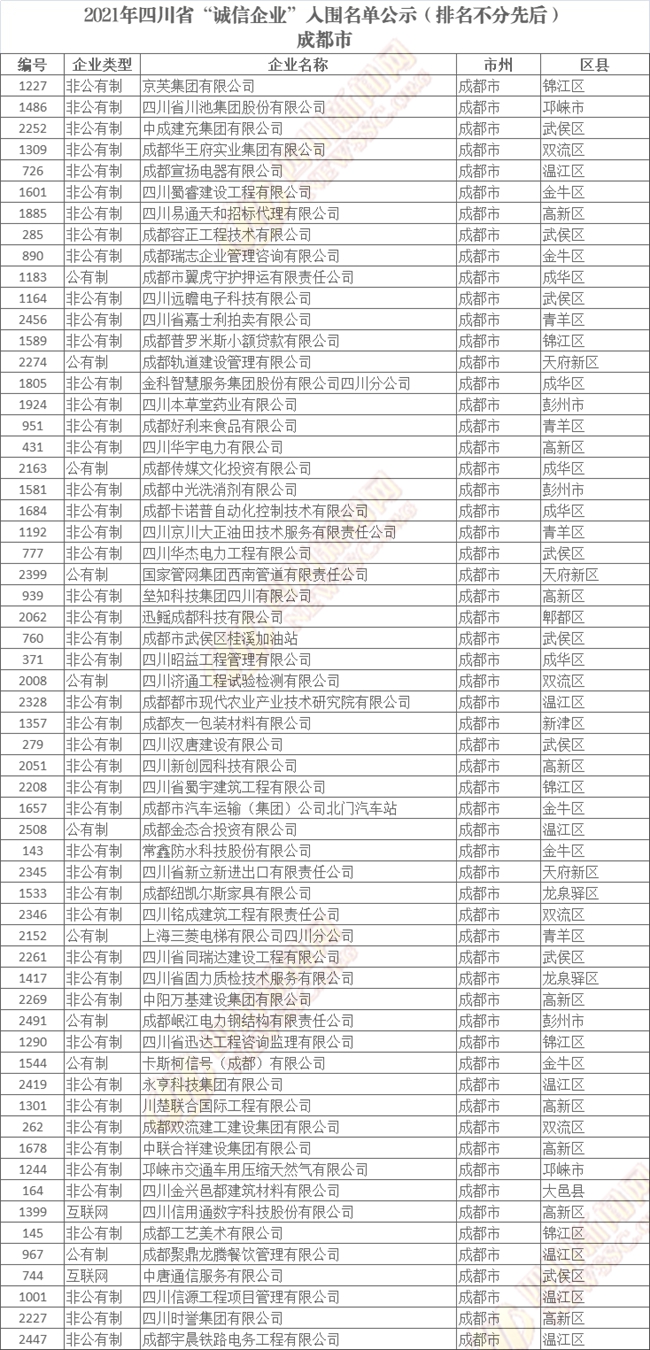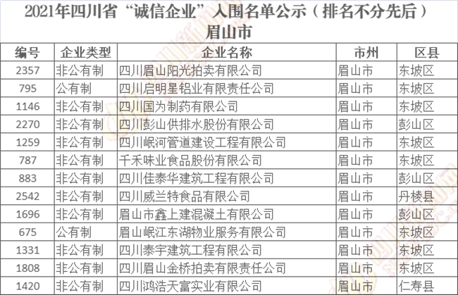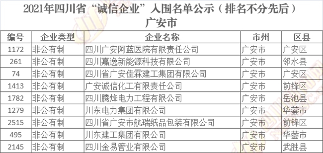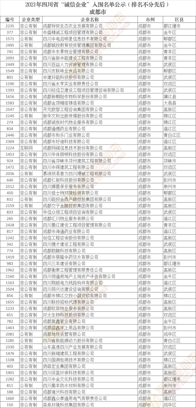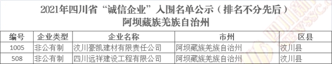 四川省“誠(chéng)信企業(yè)”入圍名單公示