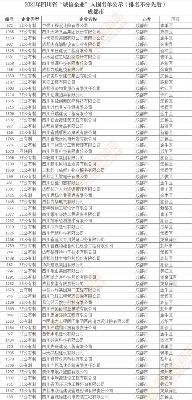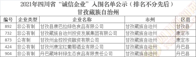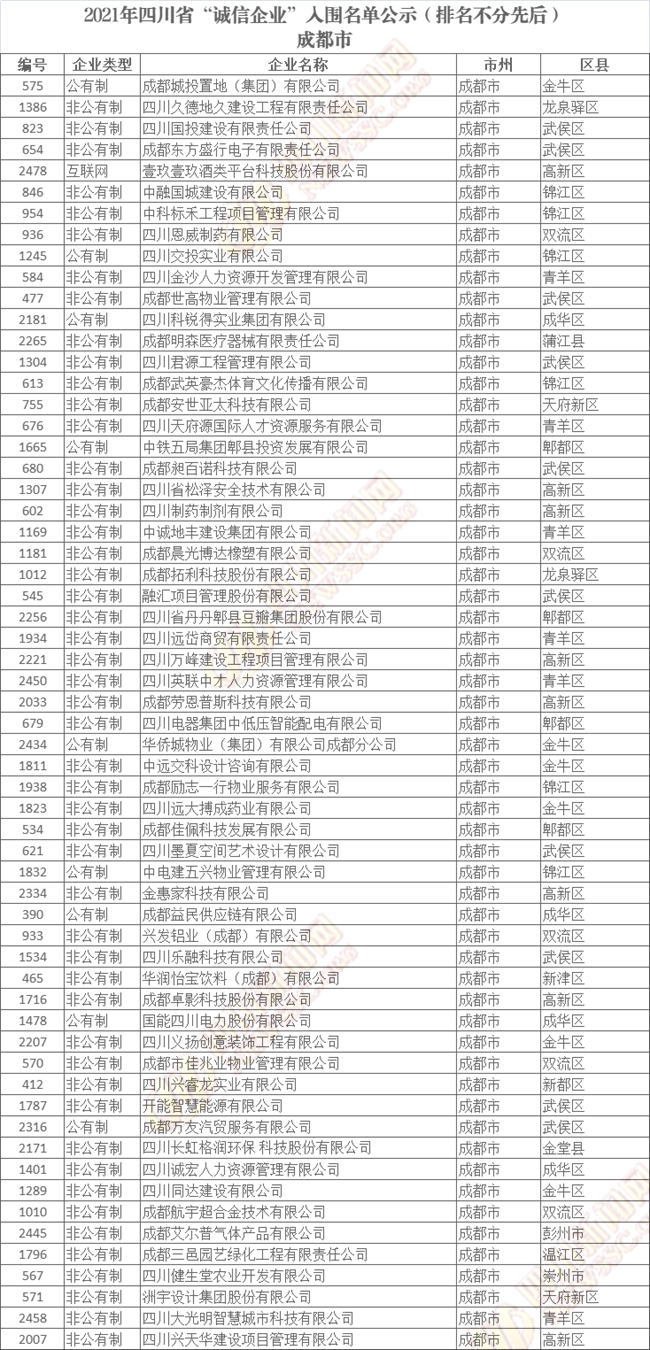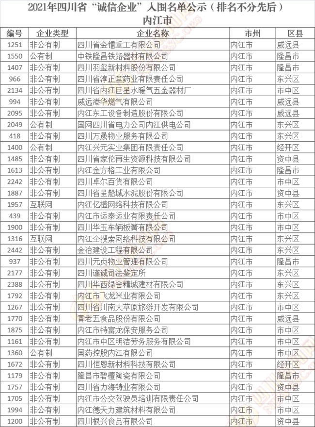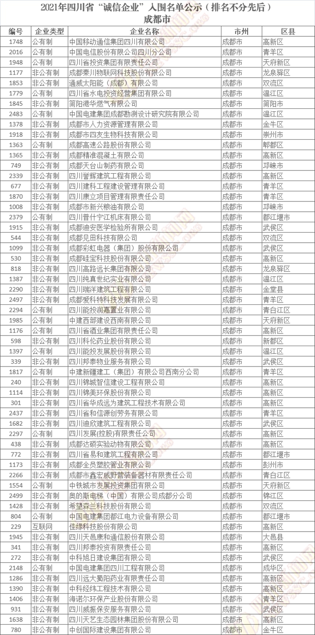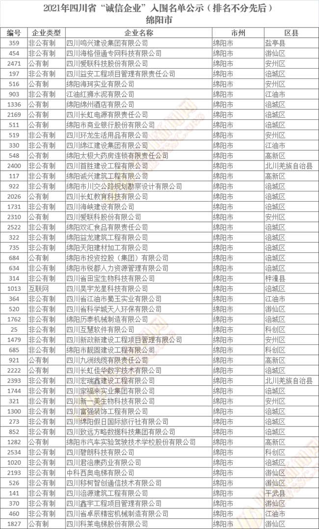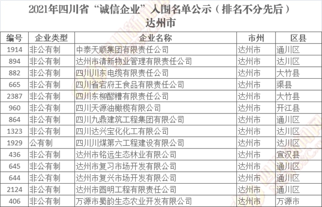 四川省“誠(chéng)信企業(yè)”入圍名單公示