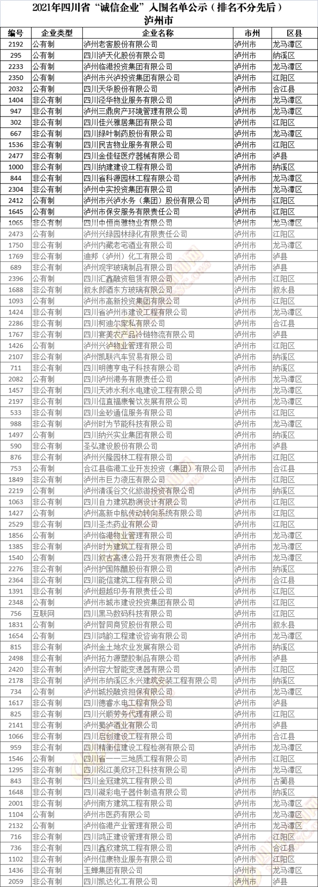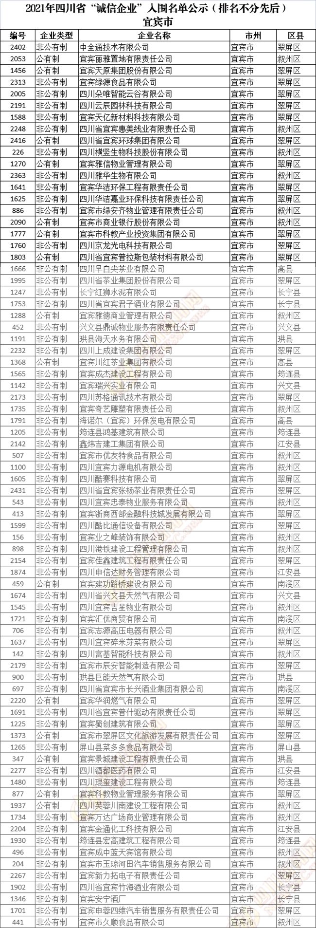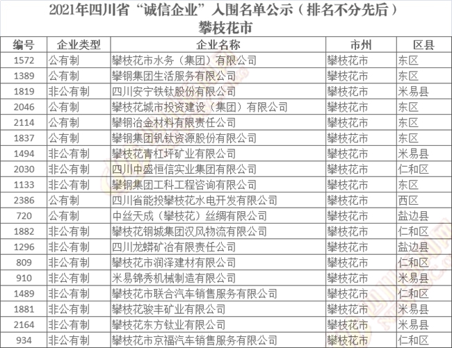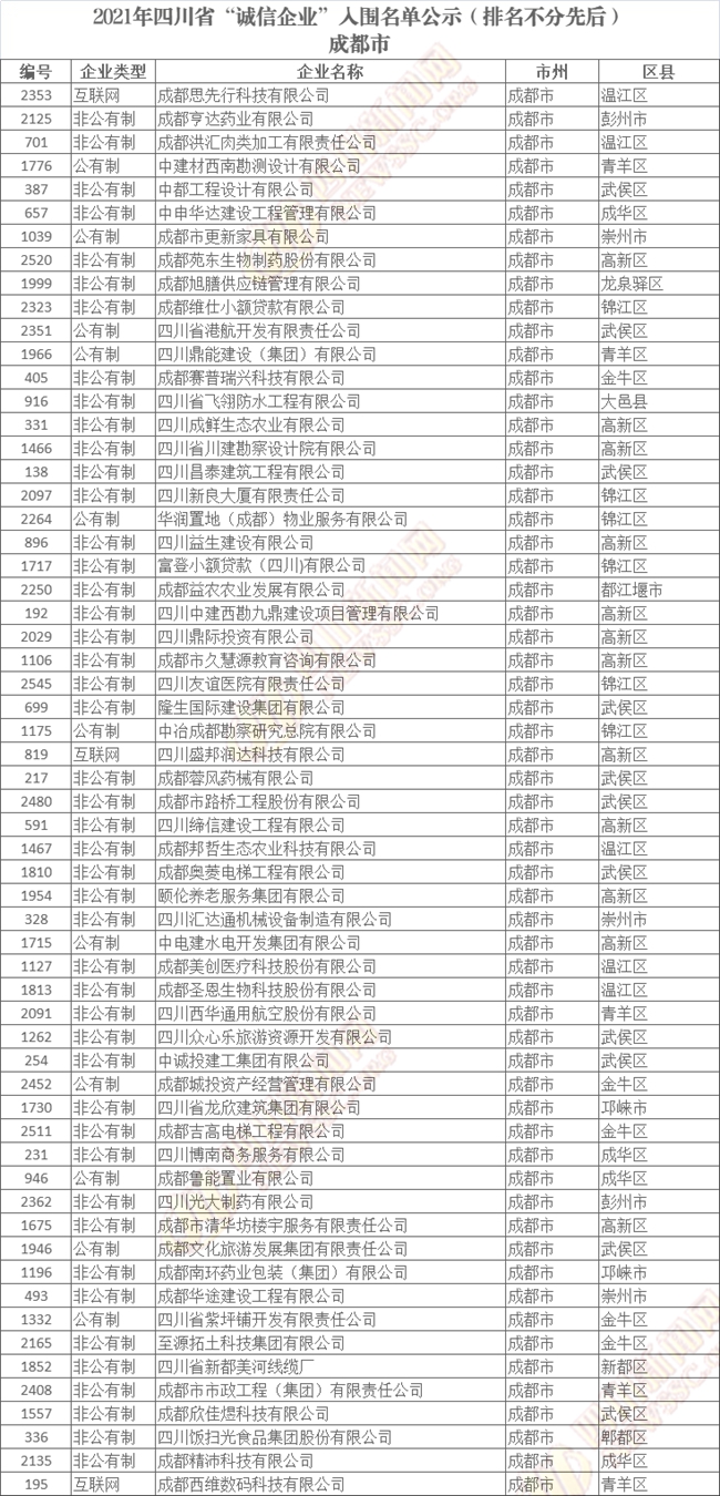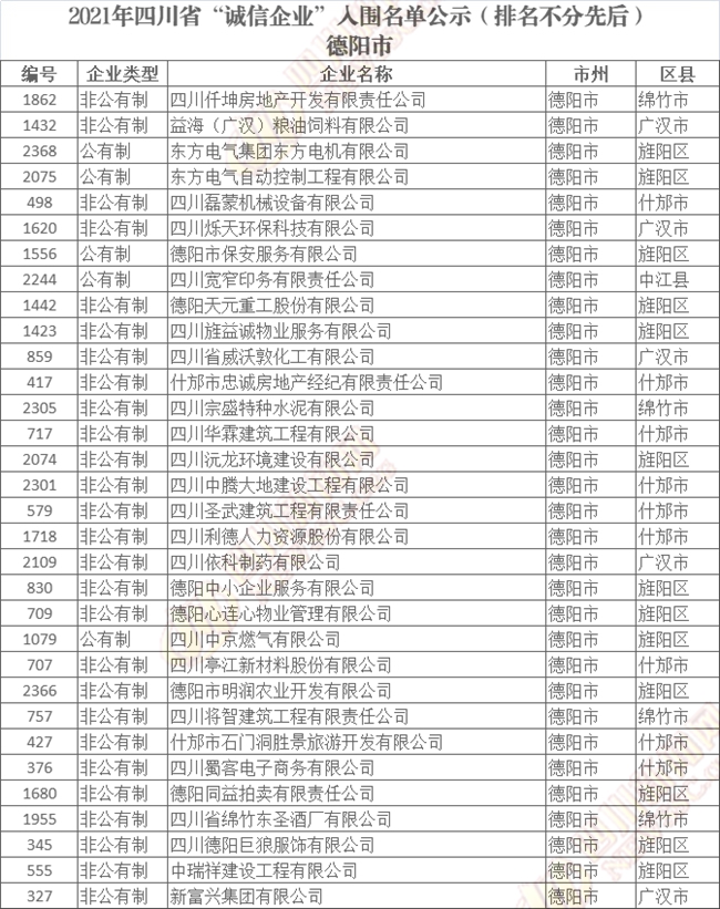四川省“誠(chéng)信企業(yè)”入圍名單公示